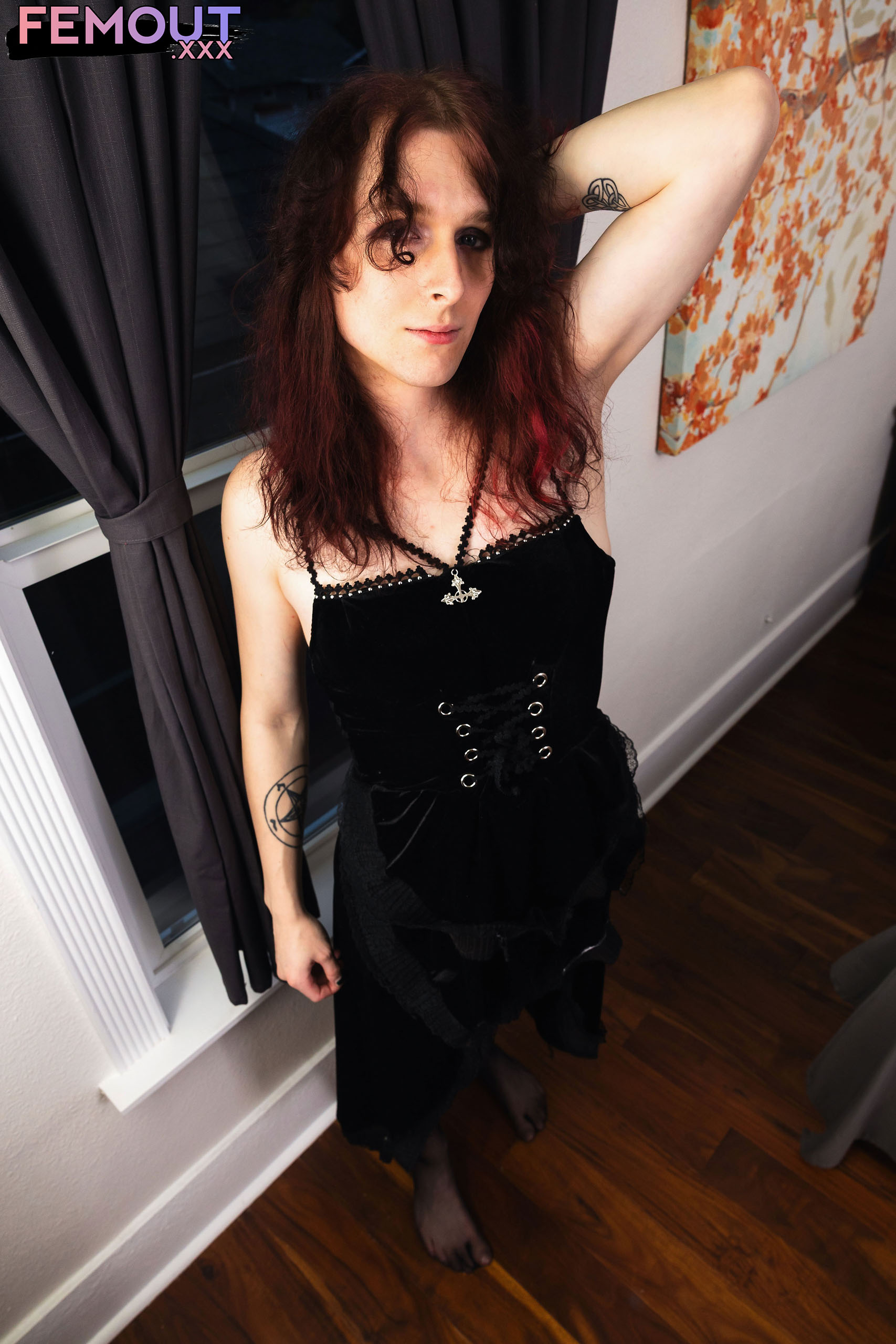 After a long day of hanging out with other people, Sigrid wants some time with herself. Alone in the room she starts touching herself, warming up and getting increasingly horny. Laying on the bed she's stroking her thick cock and fucking herself with her dildo until she cums. What a way to end the night!